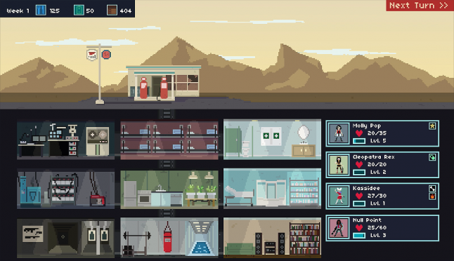 The idea for base-management gameplay in Bunker Punks came from Neville’s own fascination for customization of build-outs in games. Similar to Luca Redwood’s 1000000 and You Must Build a Boat, players could experiment with different bunker build-outs for varying effects and advantages.