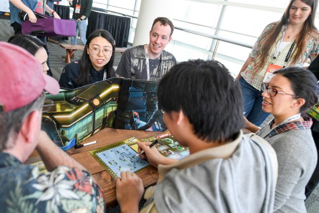 GDC 2017 attendees playing Captain Sonar at the conference’s Shut Up & Sit Down board game lounge
